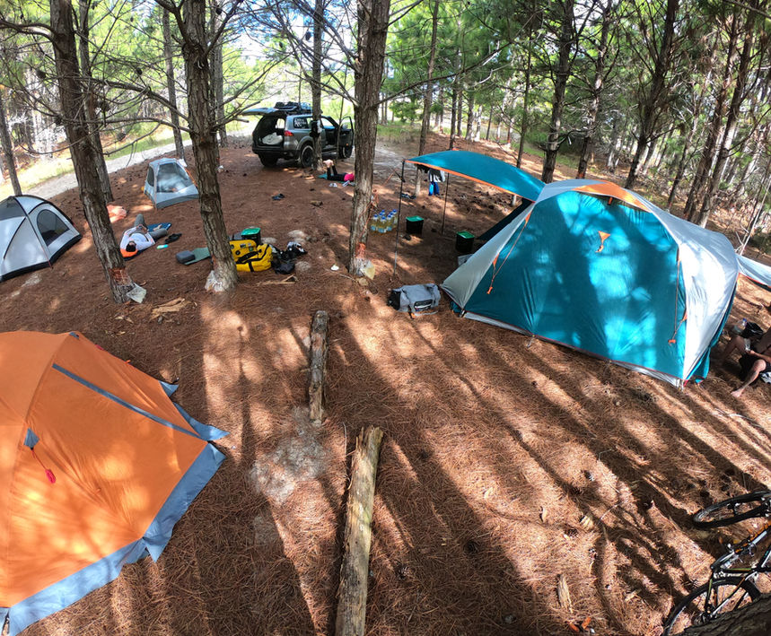 Caminhada de 20 a 26km com pernoite em acampamento na Floresta de Araucárias.